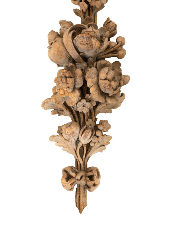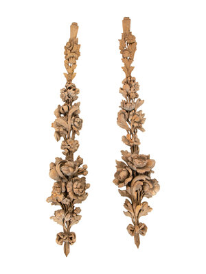 A Pair of Continental Carved Limed Oak Boiserie Swag Wall Appliques