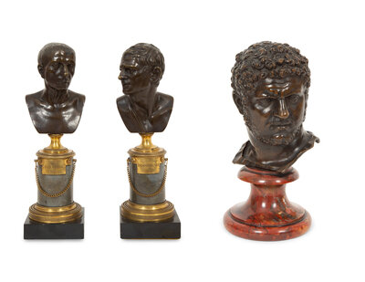 Three French Bronze Busts of Cicero and Demosthenes, and Roman Emperor Caracalla