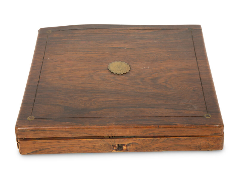 Case, height 2 x11 1/4 inches square; medallion diameter 1 5/8 inches.