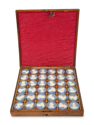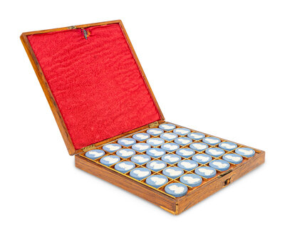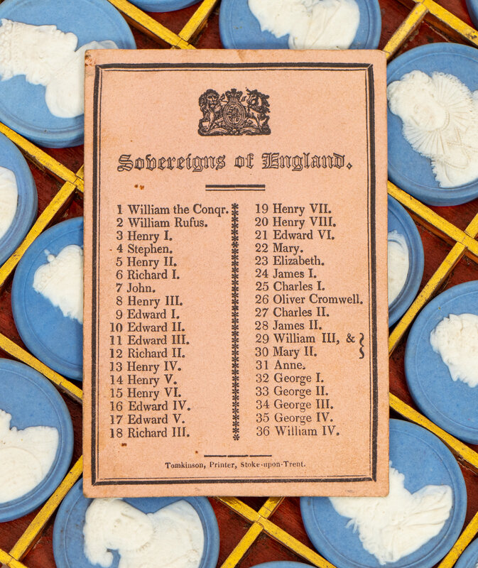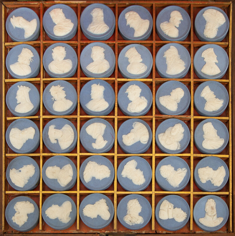 A Cased Set of Wedgwood Jasperware Portrait Medallions, Sovereigns of England
