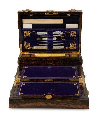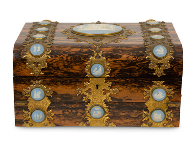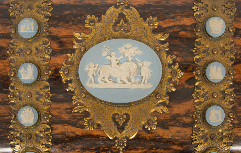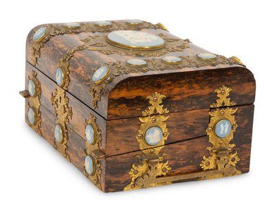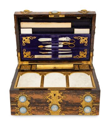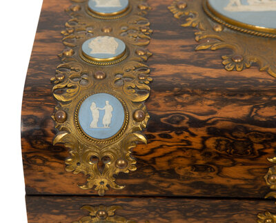 A Victorian Jasperware and Calamander Sewing/Writing Box by Mechi & Bazin