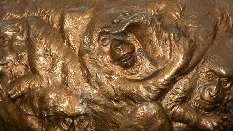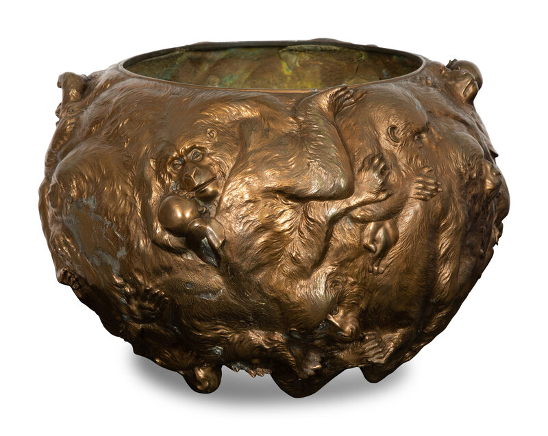 A Japanese Bronze Monkey Motif Jardiniere