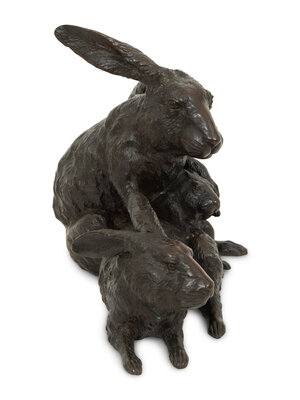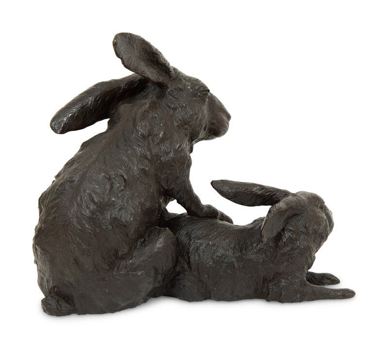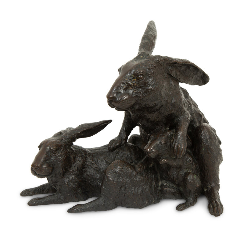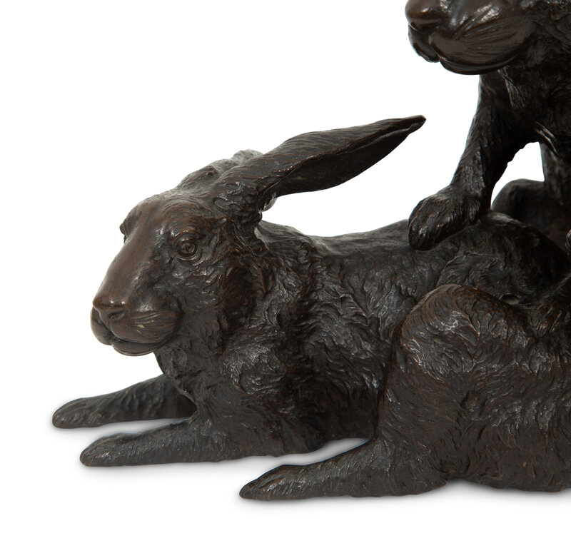 A Japanese Bronze Sculpture of Rabbits