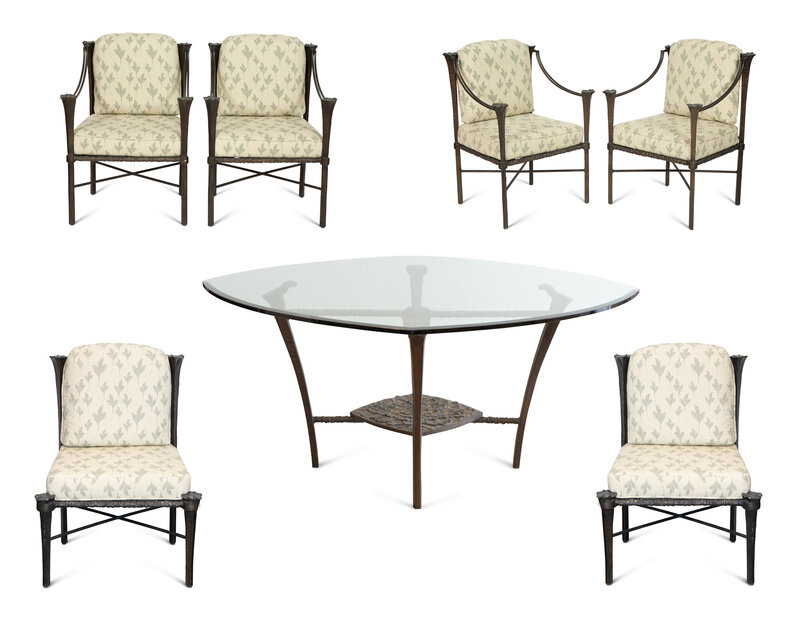 A Suite of Michael Taylor Arcadia Patinated Aluminum Outdoor Dining Furniture