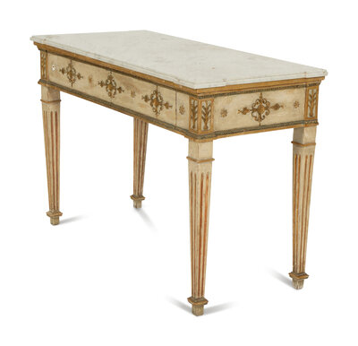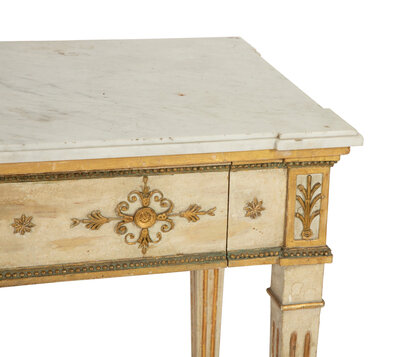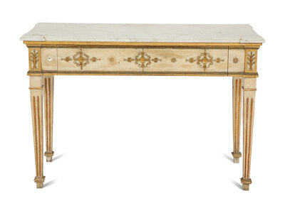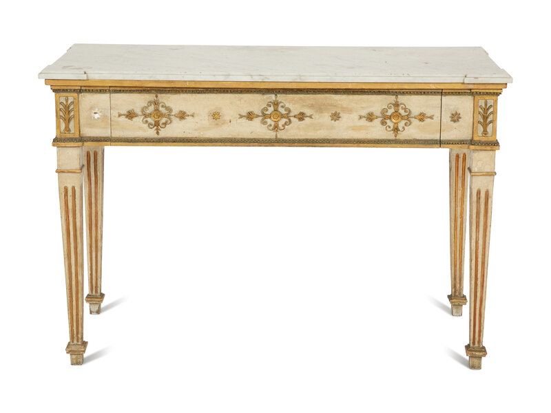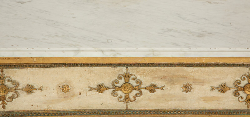 A Neoclassical Painted and Parcel Gilt Marble Top Console Table
