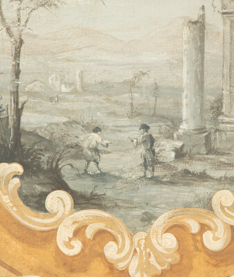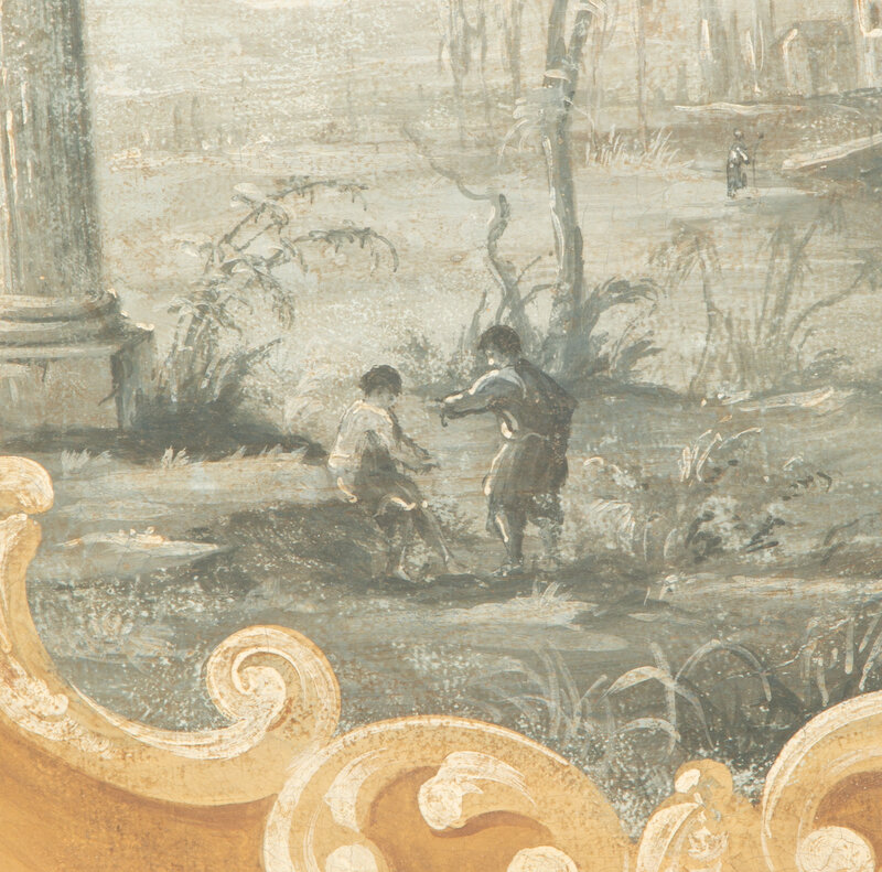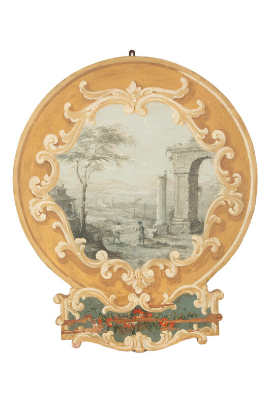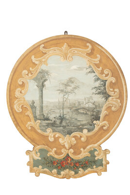 the tempera on paper paintings laid down on canvas and mounted on a shaped wood frame.