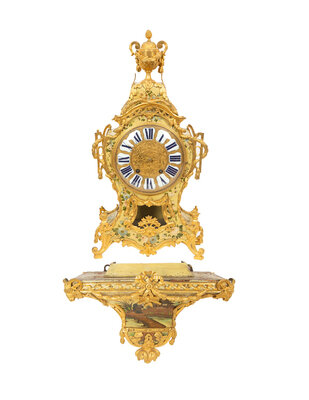 A French Gilt Bronze-Mounted Polychrome-Painted Bracket Clock