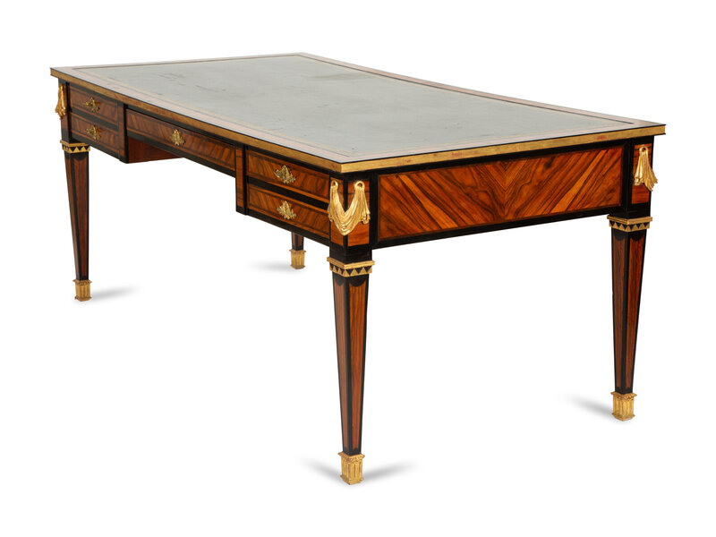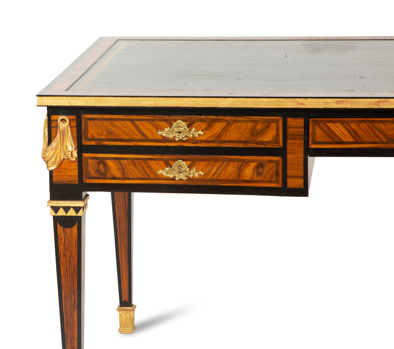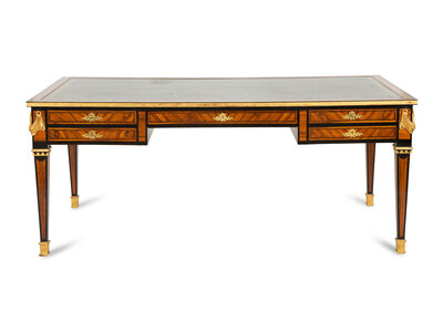 An Empire Style Cross Banded Walnut and Ebonized Bureau Plat
