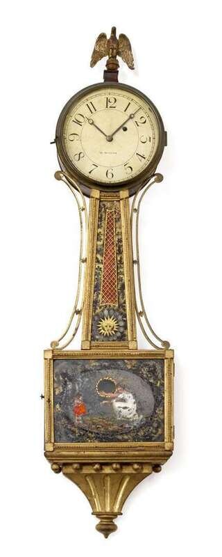 Classical mahogany and giltwood banjo clock movement by w. woods