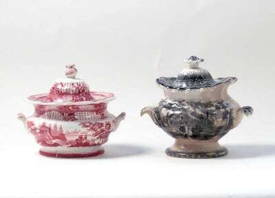 Two transfer-printed covered sugar bowls 19th century
