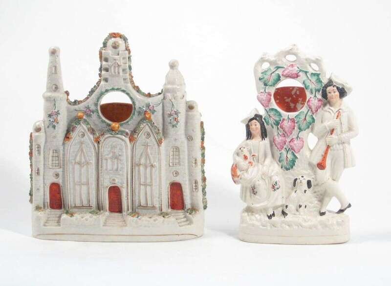 Two Staffordshire figural watch holders 19th century