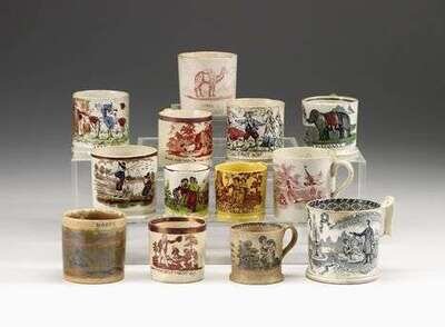 Eleven Stafforshire transfer-printed children's mugs 19th century