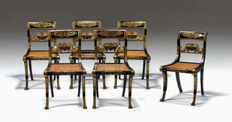 Set of six Classical ebonized and parcel gilt chairs early 19th century