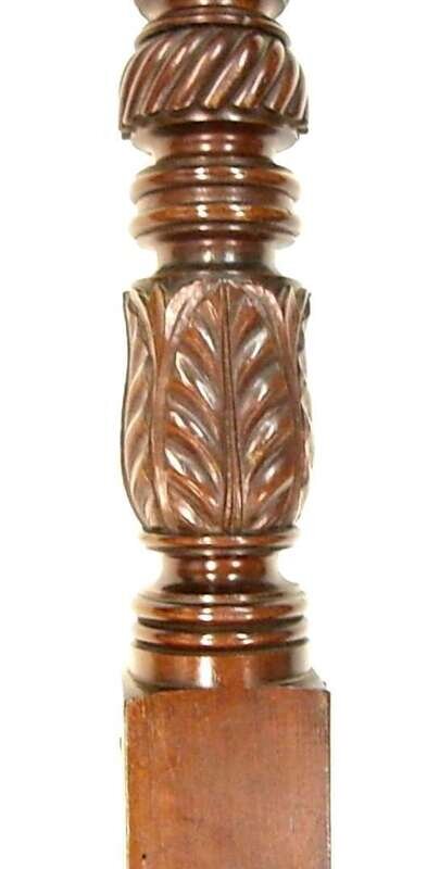 The head posts carved with acanthus leaves and acorns; the footboard with serpentine edge.