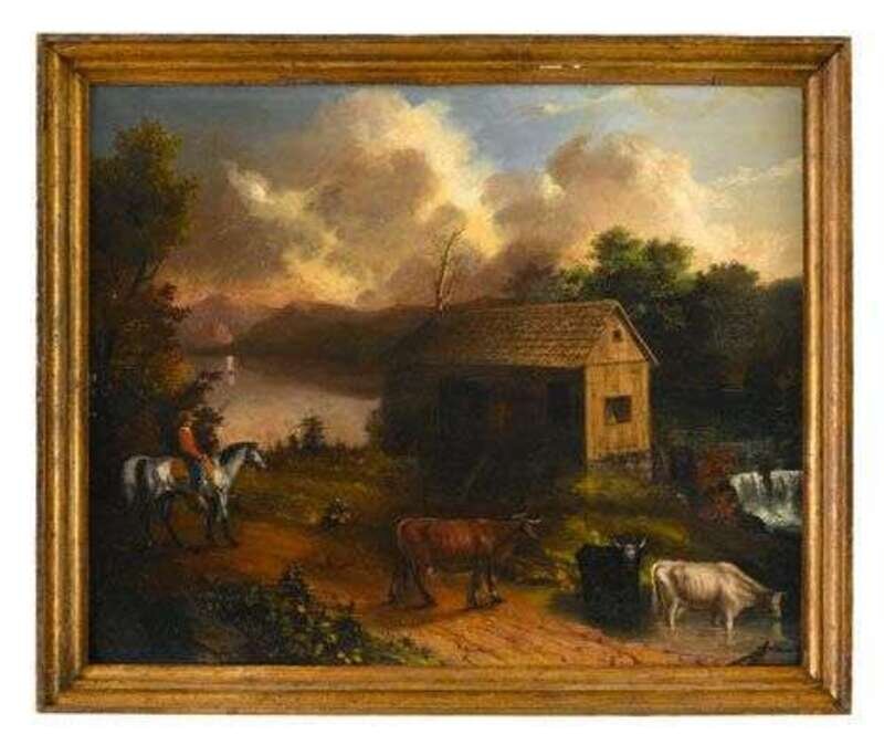 Alfred A. Hart(1816-1906) landscape with farm house and cattle