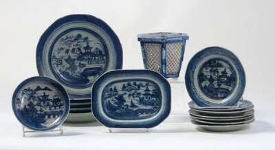 Group of Chinese export porcelain blue and white Canton tablewares mid-late 19th century