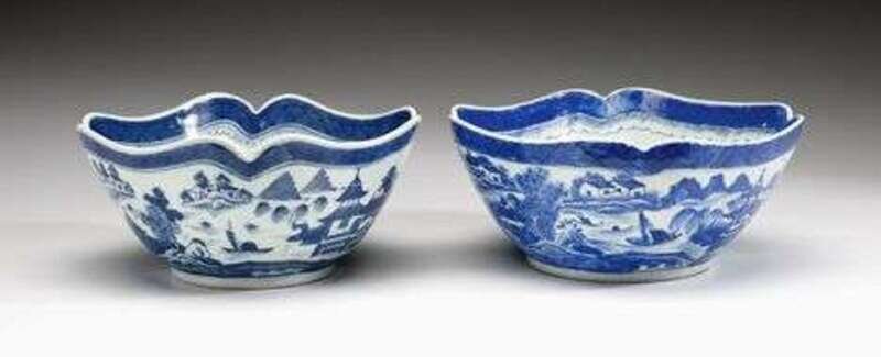 Two Chinese export porcelain Canton salad bowls late 18th/ early 19th century