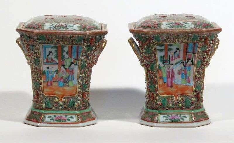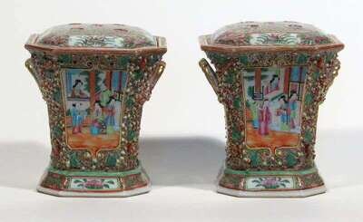 Pair of Chinese export porcelain Rose Medallion vases mid-late 19th century
