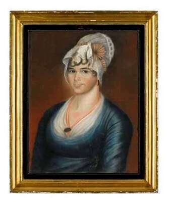 American School, 19th century portrait of a woman in a lace bonnet