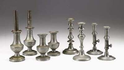 Group of eight pewter candlesticks 19th century