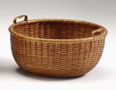 Of circular form with turned wooden base and carved handles; retains partially legible portion of a printed maker's label.