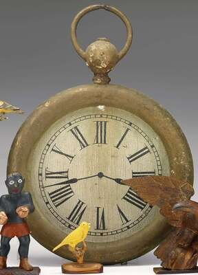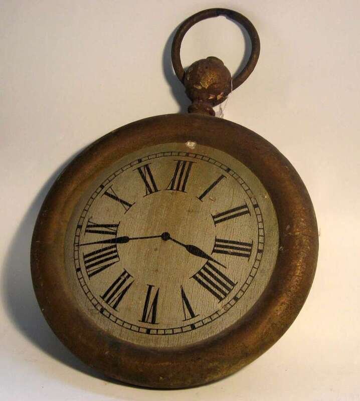 Painted and decorated wooden trade sign in the form of a pocket watch 19th century