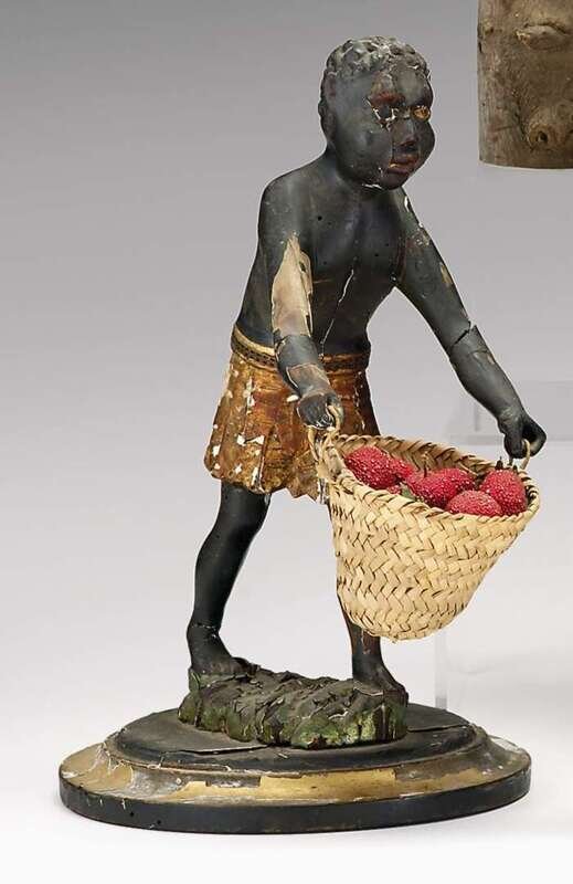 Carved polychrome figure of a man with basket of fruit 19th century