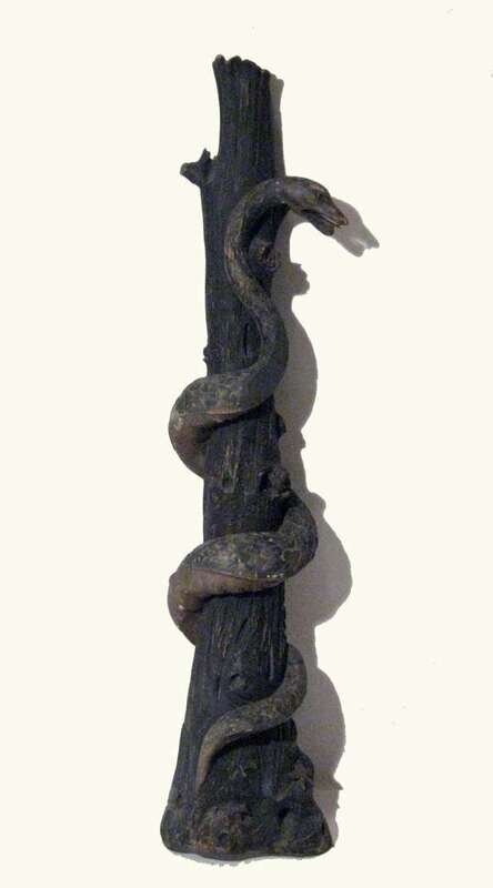 Large carved and painted snake and tree 19th century