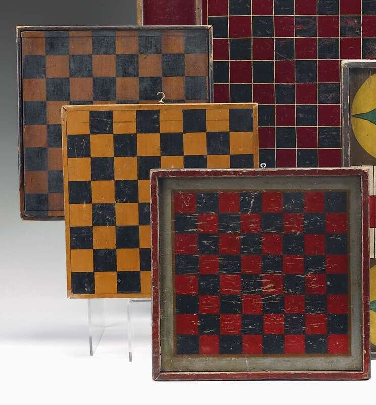 Three painted wood checkers gameboards 19th century