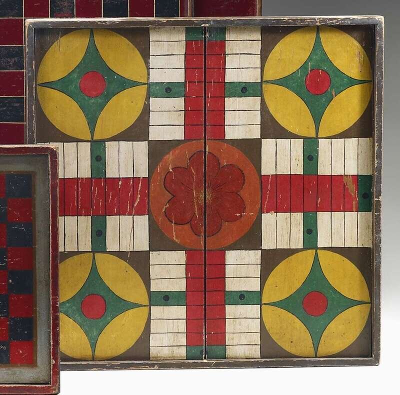 Painted and decorated wooden parcheesi gameboard 19th century