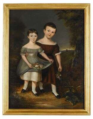 American School, 19th century two young children holding flowers