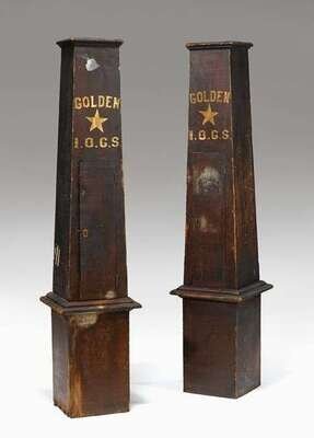 Pair of painted pine International Order of the Golden Star fraternal obelisks mid/late 19th century