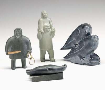Three carved stone Inuit sculptures late 20th century