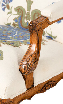 with Brunschwig and Fils Flowers of Jamakhana upholstery.