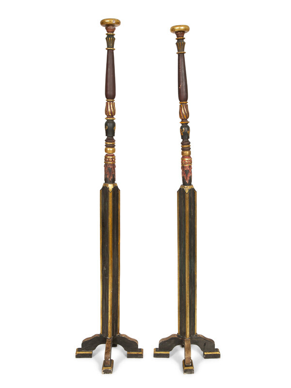 A Pair of Neoclassical Style Black and Gilt Torcheres