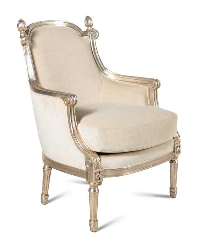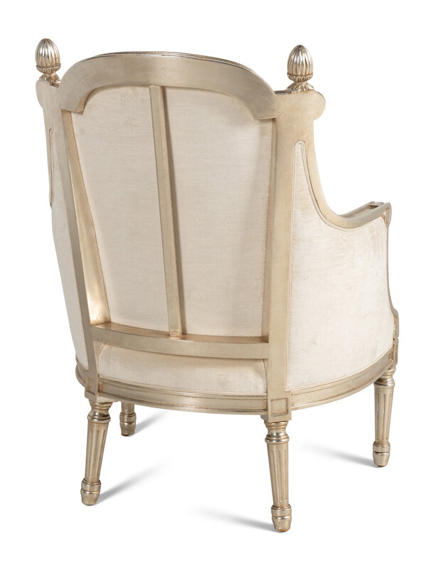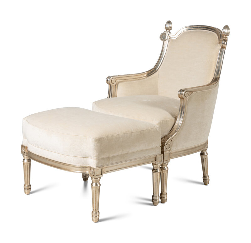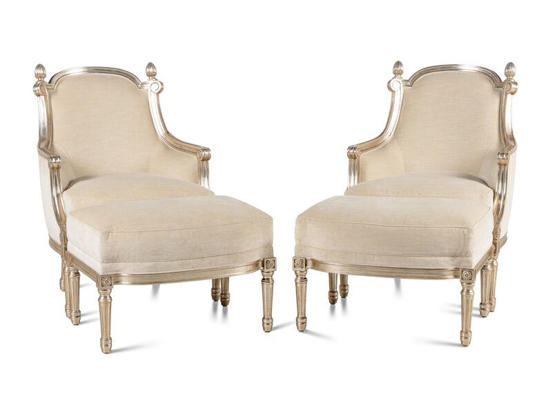 A Pair of Nancy Corzine Silvered Acorn Lounge Chairs and Ottomans