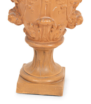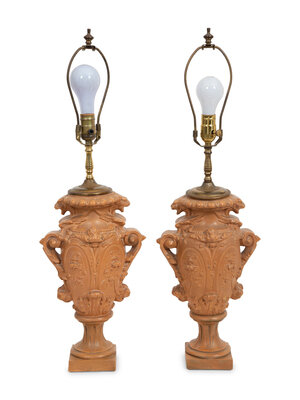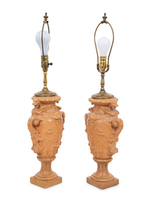 A Pair of Glazed Terracotta Vases now Mounted as Lamps