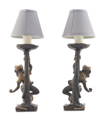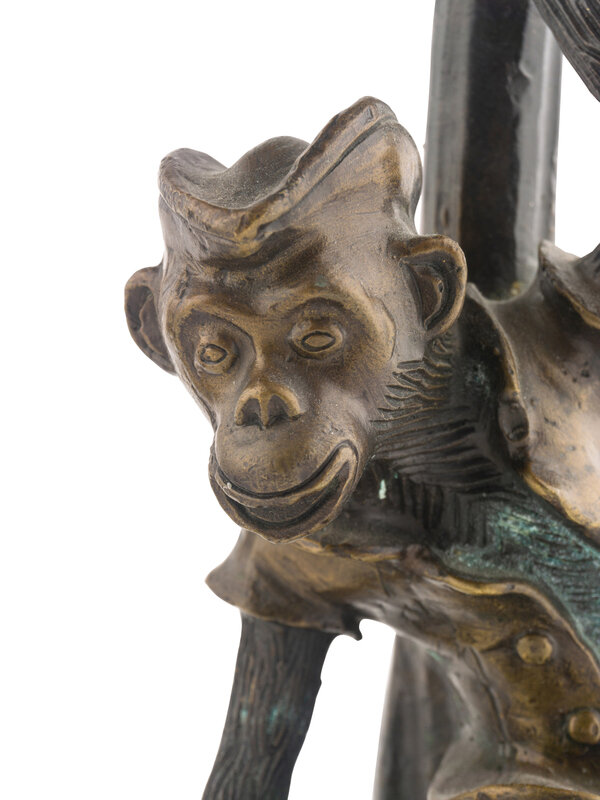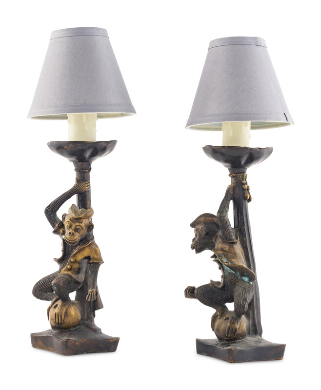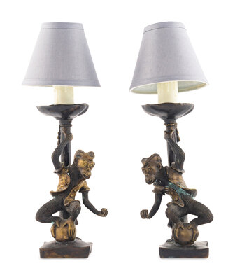A Pair of Bronze Monkey Candlesticks Mounted as Lamps