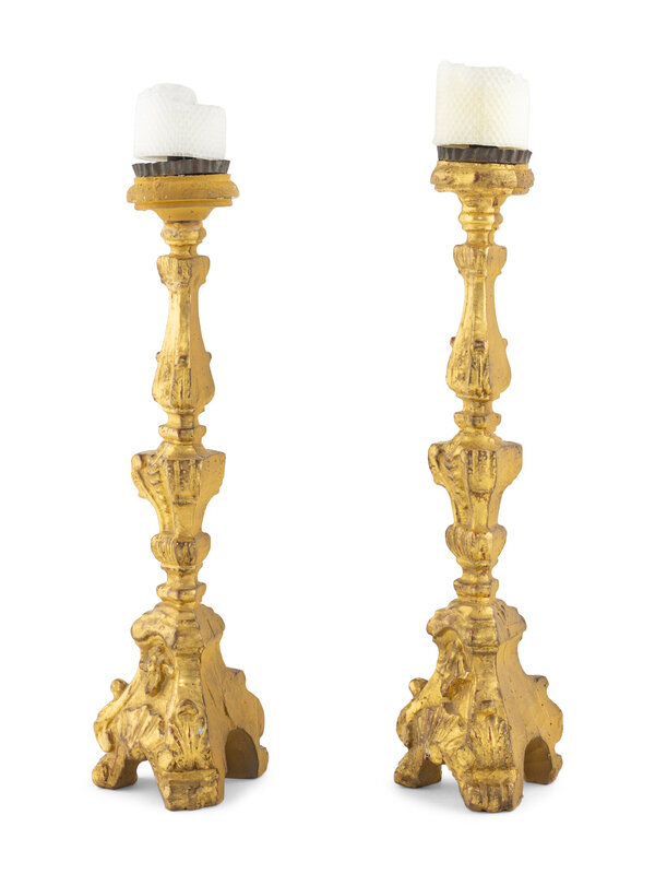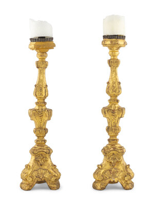A Pair of Continental Giltwood Prickets