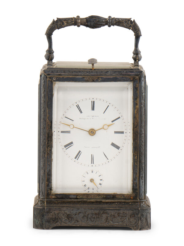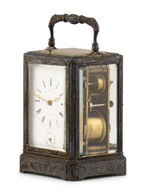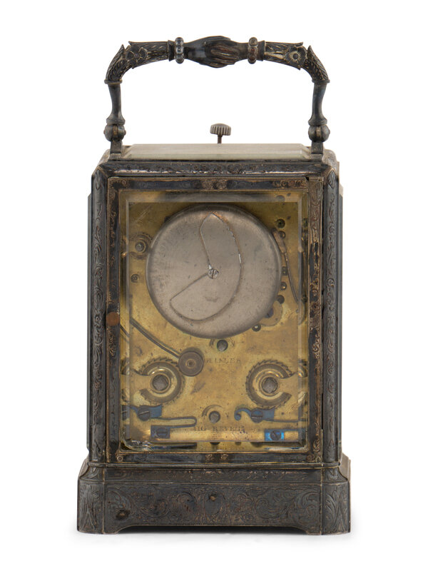 A French Silvered Bronze Repeating Carriage Clock