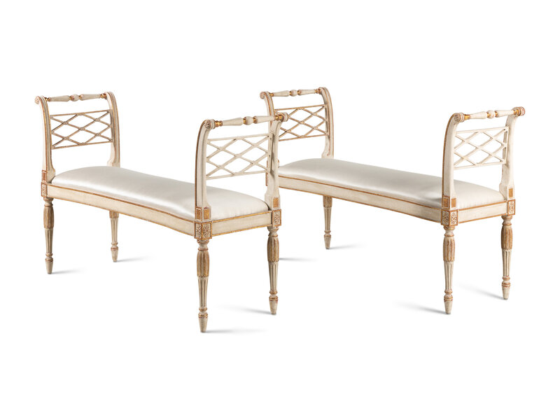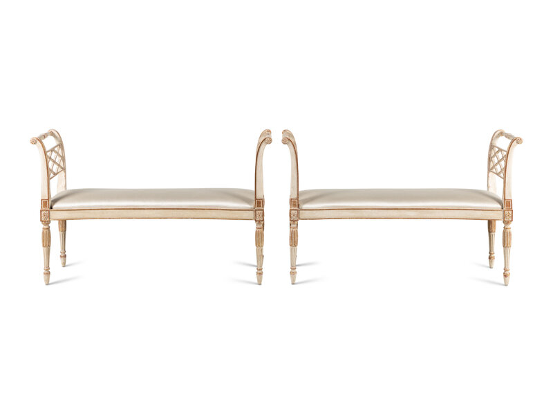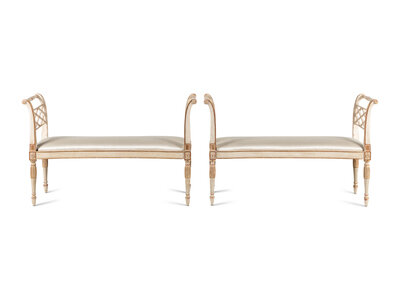 A Pair of George III Style Painted and Parcel-Gilt Window Benches