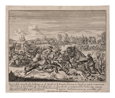 3) SCHENK, Pieter. [The Yamsee War of 1715. Incursus Indorum in Anglos in insula Carolina 19 Aprilis], ca 1720 or later, Amsterdam.