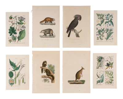 [ANIMALS & BOTANICALS]. A group of approximately 45 prints featuring flora and fauna, most engraved and many with hand-coloring.