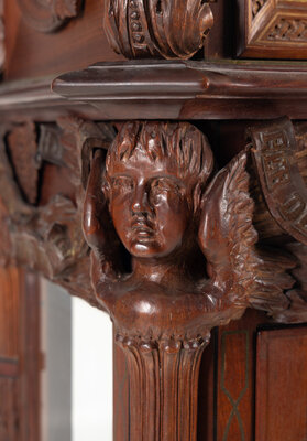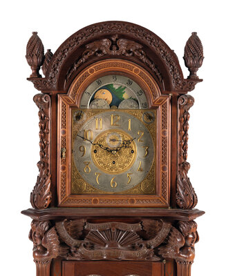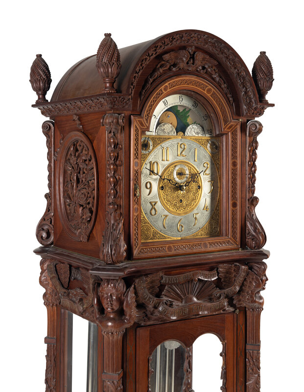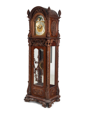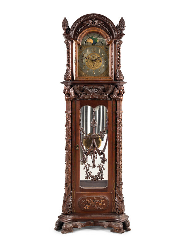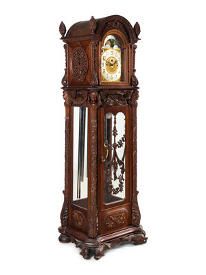A Renaissance Revival Carved Mahogany Tube-Striking Tall Case Clock