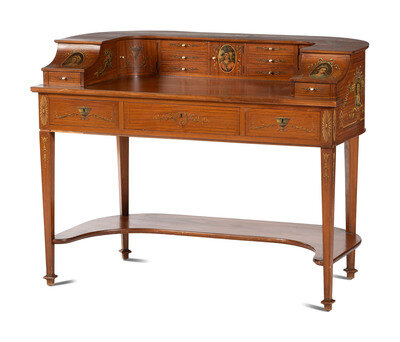 An Edwardian Style Painted Satinwood Carlton House Desk