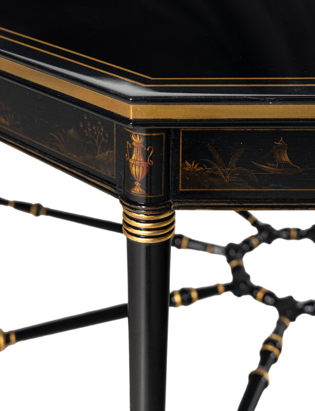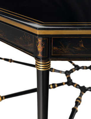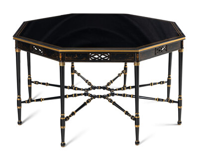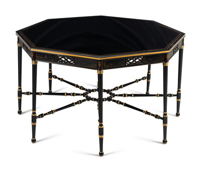 A Regency Style Ebonized and Parcel Gilt Center Table