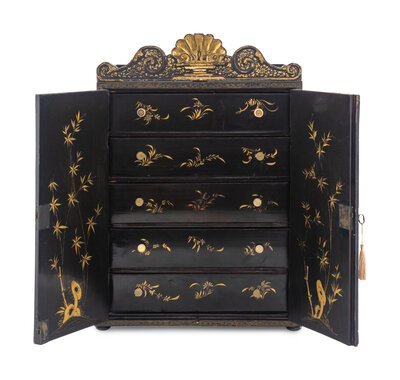 A Chinese Export Lacquer Jewelry Cabinet