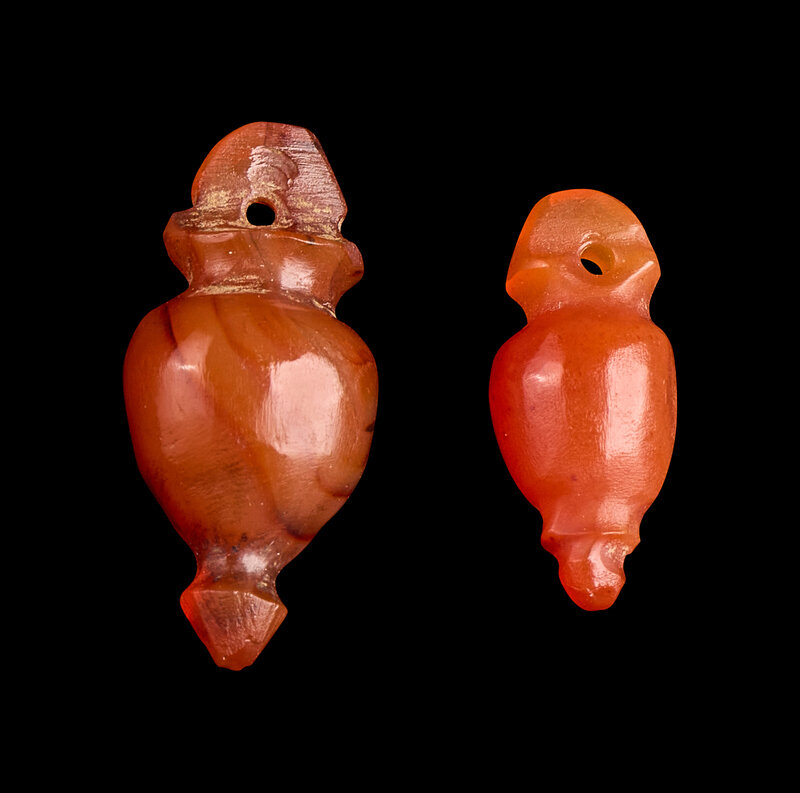 A Pair of Egyptian Carnelian Heart Amulets