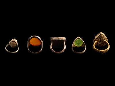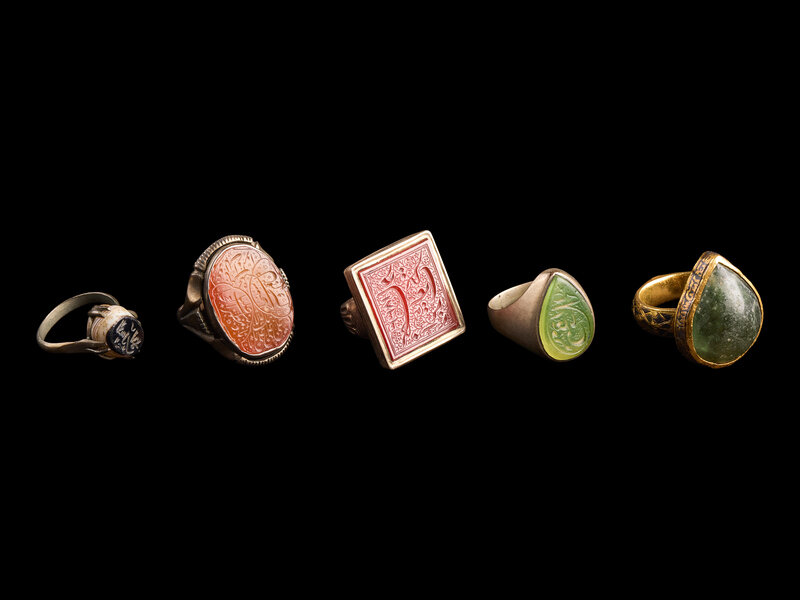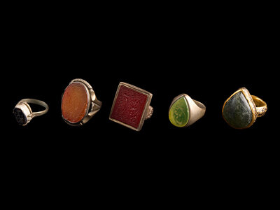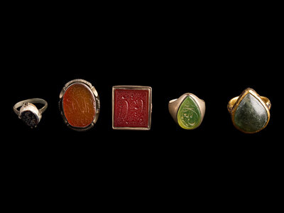 A Group of Five Islamic Stone and Metal Finger Rings