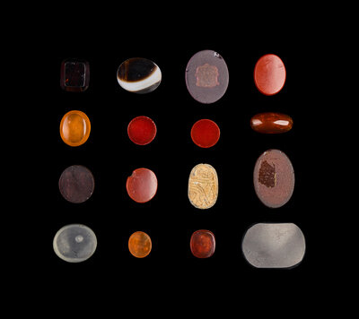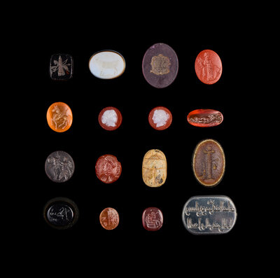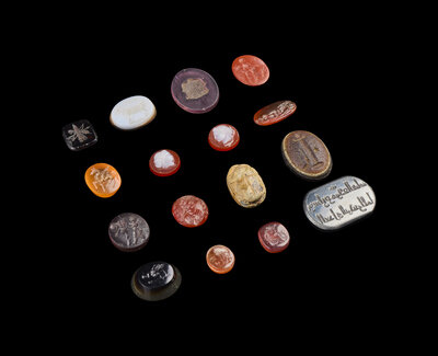 A Group of Sixteen Roman and Neoclassical Stone and Glass Intaglios